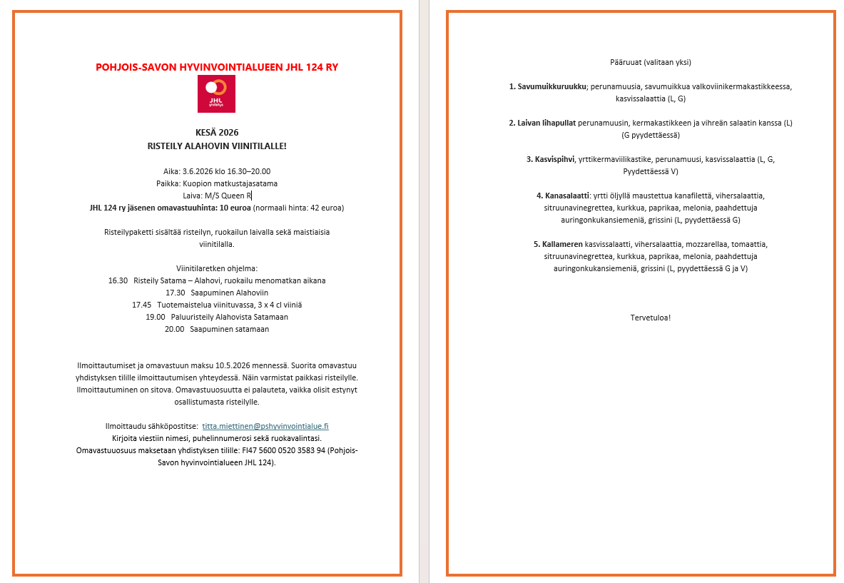 Pohjois-Savon hyvinvointialueen JHL ry 124